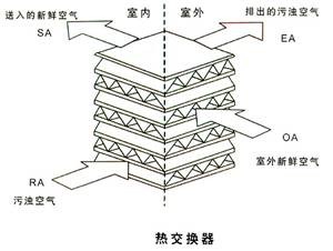 在新風換氣機組上使用的熱交換器有靜止式和旋轉式兩種。轉輪式屬于旋轉式;板翅式和熱管式屬于固定式;轉輪式換熱器熱交換效率高;工作時換熱芯旋轉往復運動。其換熱過程為周期性地吸熱和放熱。優(yōu)點是熱濕的轉移在同一通道完成。傳熱傳質熱阻濕阻小。